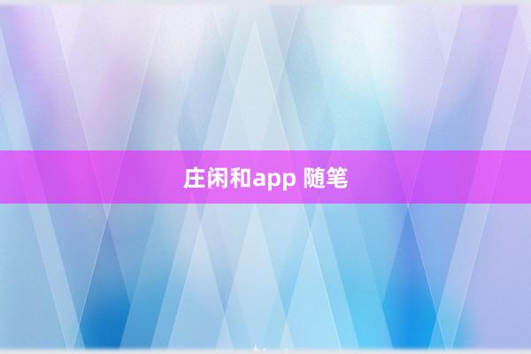 莊閑和游戲 【美圖美文 - 淡泊以明志,寧靜以致遠】